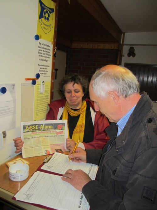 Nachdem nun die aktuelle Asse-Alarm-Zeitung nahezu flächendeckend in der Samtgemeinde verteilt wurde, hoffen wir auf viele weiter Unterschriften und vor allen Dingen dass viele Mitbürger und Mitbürgerinnen die Gelegenheit nutzen, im Kollegen- und Freundeskreis Unterschriften gegen die Flutungspläne des BfS zu sammeln.